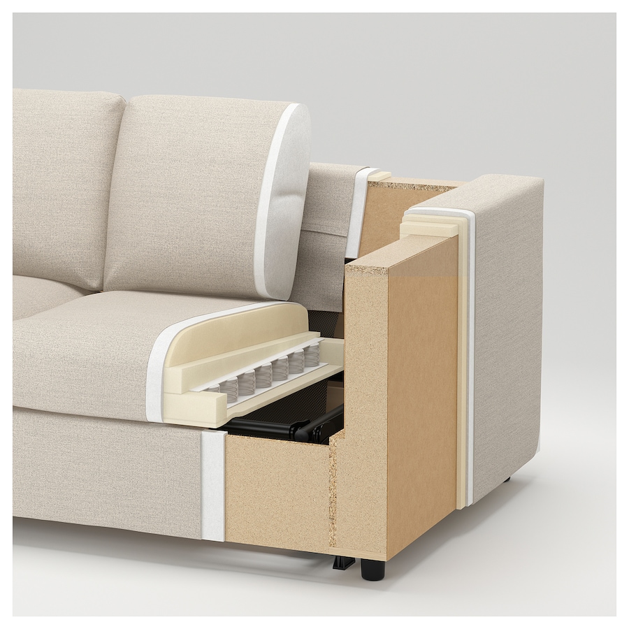 Grann Bomstad golden brown This comfortable sofa has pocket spring seat cushions with high resilience foam and a top layer of wadding. It provides a nice comfort and support for your body while